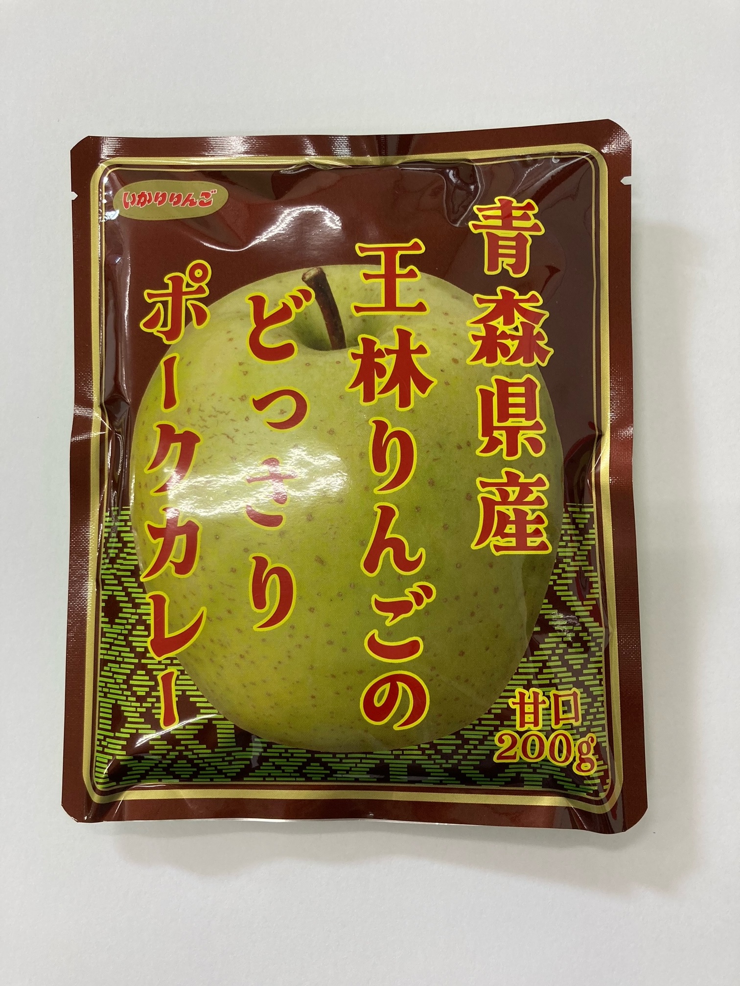 りんご(青森県産)、豚肉、オニオンソテー(大豆を含む)、小麦粉、食用油脂(パーム油、牛脂)、カレー粉、砂糖、野菜(玉ねぎ、しょうが、にんにく)、バター(乳成分を含む)、食塩、トマトケチャップ、トマトペースト、チャツネ(りんご・大豆を含む)、チキンエキス、だし醤油(大豆・小麦を含む)、香辛料、デキストリン、粉末ワイン(りんごを含む)、たん白加水分解物(小麦・大豆を含む)/調味料(アミノ酸等:大豆由来)、増粘多糖類、カラメル色素、酸味料、アルコール、ビタミンC